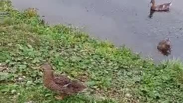 Верхний Тагил. Утка-мать позвала свой выводок на берег. Видимо, привыкли, что их тут все кормят🙂