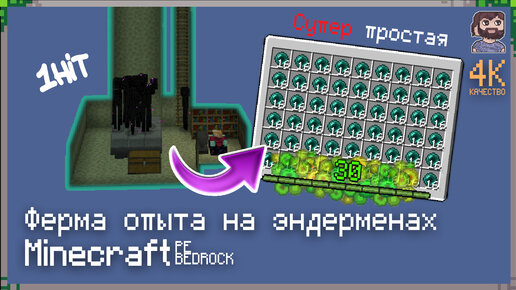 🏭 Очень простая Ферма опыта на эндерменах [30LVL / 2 Мин] 🎮 Minecraft PE / Bedrock 1.20+