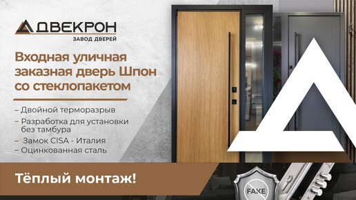 Входная уличная дверь со Шпоном - двойной терморазрыв. Бронированный стеклопакет. Оцинкованная сталь. Замок CISA - Италия. Тёплый монтаж!