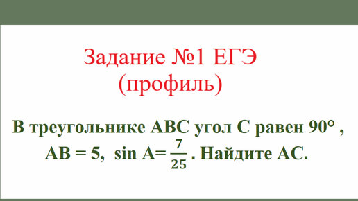 Прямоугольный треугольник. Задача №3. Разбор задания №1 ЕГЭ(профиль)