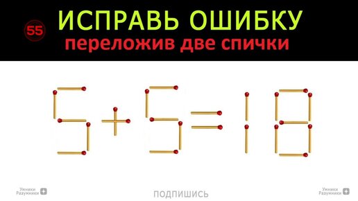 Математическая головоломка со спичками 🥢🎓 5+5=18 😉 Исправь ошибку переложив две спички 😉😵