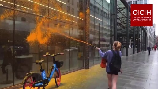 Экоактивисты обливают краской Минэнерго Британии. По причине того, что ведомство выдало новым компаниям лицензии на работу с нефтью и газом