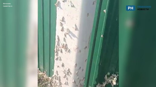 В селе Деулино Рязанского района засняли столб, полностью облепленный бабочками непарного шелкопряда