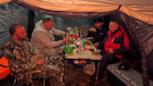 Уютный лагерь в лесу. Поймали судака и зажарили на сковородке