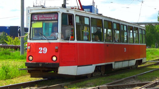 Трамвай 71-605 (КТМ-5М3) №29 с маршрутом №5 "Больница №9 - Улица Чкалова"