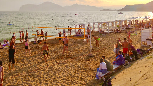 Популярные курорты восточного Крыма сегодня вечером. Пляжи и набережные. Орджоникидзе и Коктебель. Вторая половина июля 2023 г.