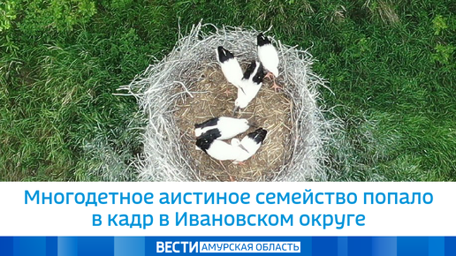 Многодетное аистиное семейство попало в кадр в Ивановском округе