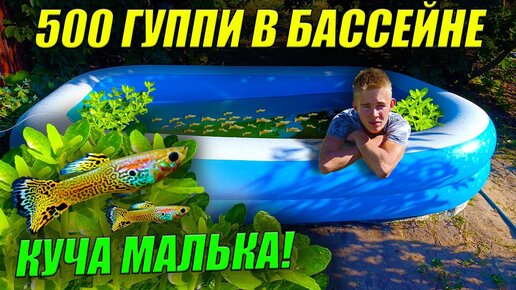 500 гуппи в бассейне спустя месяц! Куча малька! Акватеплица полна растений!