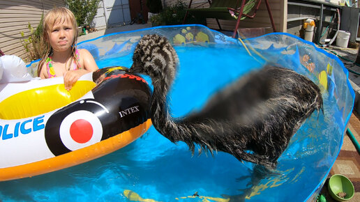 Страусенок и ребенок – летние развлечения 😂💦😮 в воде