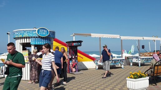 Сквер Одоевского. Дорога на пляж. Лазаревское Сочи. Улица Калараш. Пляж Калипсо. Море людей. 20 июля 2023. Воздух +29 С, вода +25 С