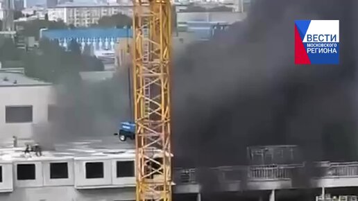 Очевидцы сообщают о пожаре на стройке в Хорошево-Мневниках. Валит густой дым. На место уже приехали пожарные машины.