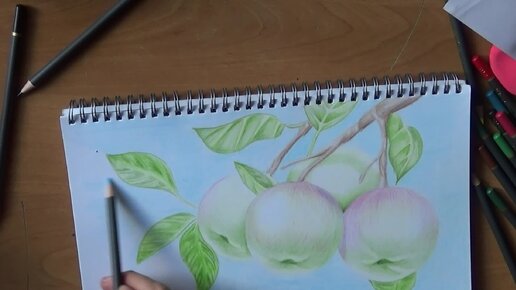 ЯБЛОКИ НА ВЕТКЕ КАРАНДАШАМИ