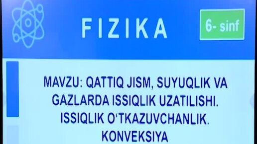 Qattiq jism, suyuqlik va gazlarda issiqlik uzatilishi. Issiqlik o'tkazuvchanlik. Konveksiya