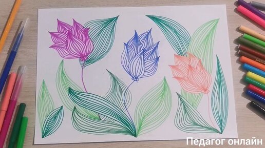 Легкий рисунок фломастерами. Рисуем летние цветы. Медитативное рисование