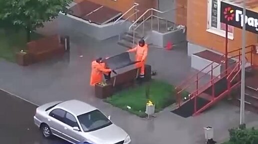 Русские люди очень упорные и настойчивые. Если решили покрасить лавку, положить асфальт, ни снег, ни дождь их не остановят.