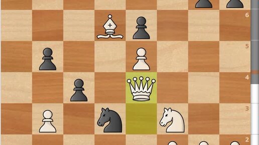 Артур Бисгвайер, играя черными, красиво побеждает Ларри Эванса на 51-м чемпионате США по шахматам в Детройте, в 1950 году. Ферзевый гамбит