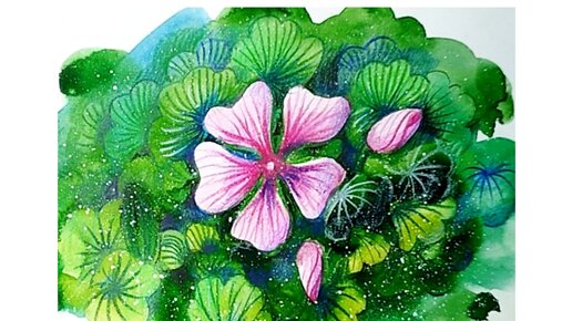 🌸🌺💮Как акварельными красками и карандашами нарисовать розовый цветок.