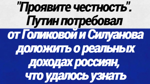 "Проявите честность". Путин потребовал от Голиковой и Силуанова доложить о реальных доходах россиян, рассказываю, что удалось узнать