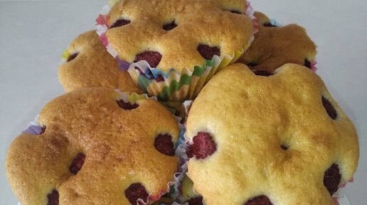 Ароматные кексы со свежей малиной