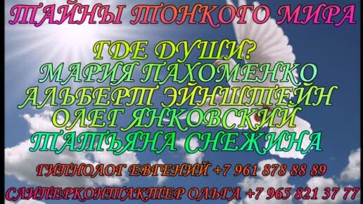 ОЛЕГ ЯНКОВСКИЙ, АЛЬБЕРТ ЭЙНШТЕЙН, ТАТЬЯНА СНЕЖИНА, МАРИЯ ПАХОМЕНКО. ГДЕ СЕЙЧАС НАХОДЯТСЯ ДУШИ?