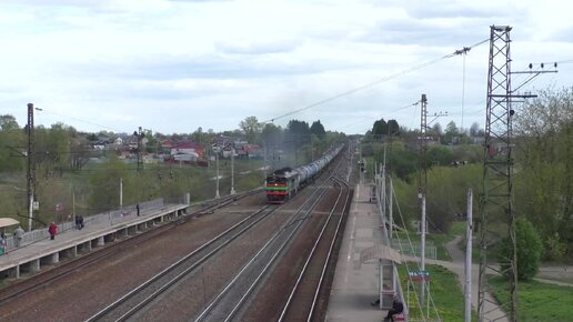 Тепловоз 2ТЭ116-1688 с наливными цистернами, ст. Струнино. 09.05.2023 г.