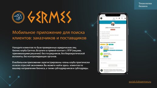 Мобильное приложение Germes для поиска заказчиков и поставщиков товаров и услуг
