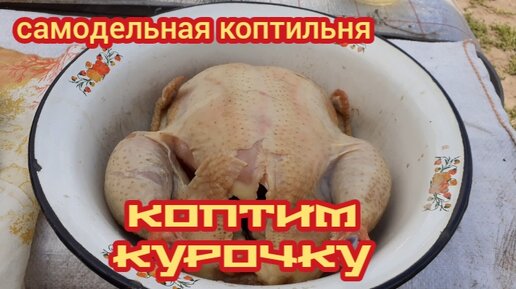 В самодельной коптильне коптим курочку.....