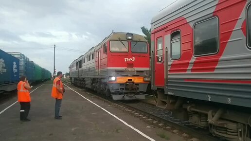 Сцепление паровоза с вагонами. Вид из последнего вагона.