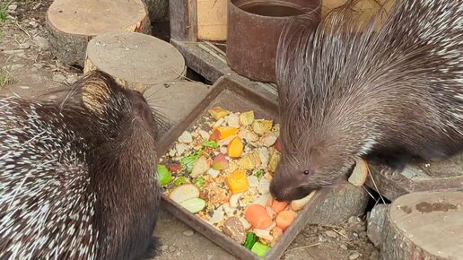 Дикобразы Дюк и Дюша делят обед