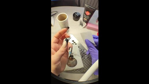 Маникюр Обучение. Укрепление натуральных ногтей полигелем с комбинированным дизайном из голографической фольги и стемпинга.