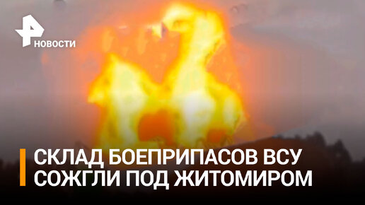 Кадры уничтожения склада с боеприпасами в Житомирской области после точного удара российских войск