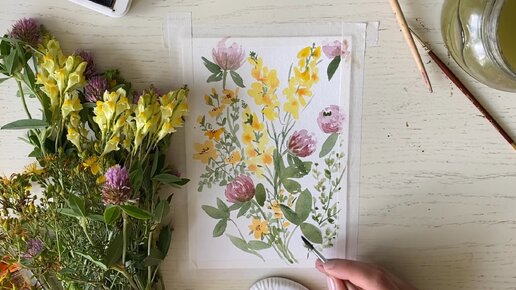 Зверобой, клевер и льнянка. Пишем полевые цветы на хлопковой бумаге