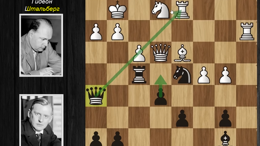Алехин бьет черным молотом (ладьей) по пешке Штальберга с эффектной победой. Гидеон Штальберг - Александр Алехин. Гамбург 1930. Турнир наций