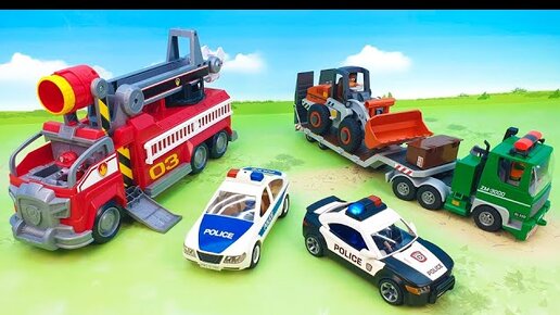 Пожарная машина Бульдозер Эвакуатор Мусоровоз Автокран Грузовик Полиция - распаковка для мальчиков.