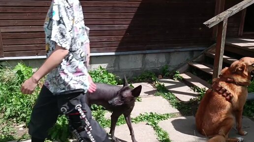 Съездил в гости к собашникам купил стаффу Лорду шлейку с грузом. Собака лучший друг человека. Знакомство с лысими собаками😭