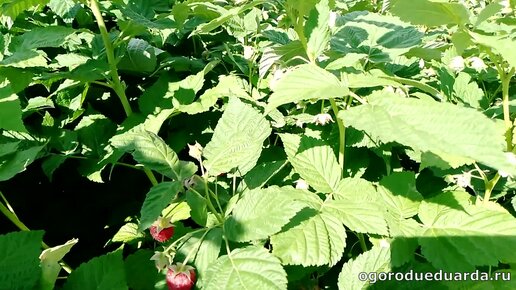 Прогулка по грядке на которой растет очень урожайная ремонтантная малина "Полка"