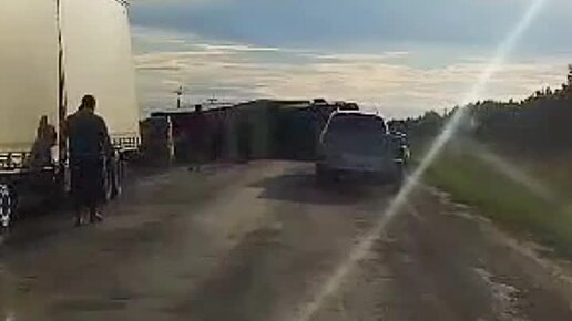 Фура перевернулась и перекрыла трассу!