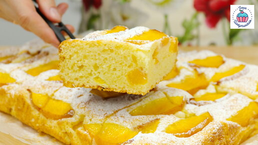 Творожный пирог с персиками: из-за того, что в тесте много творога, пирог получается влажный, сочный и тает во рту!
