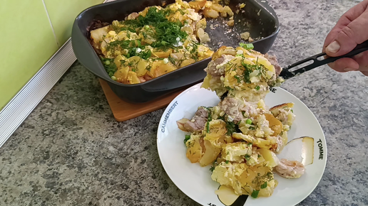 Картофель с мясом и луком запеченный в духовке. Вкусный ужин из простых и доступных продуктов.