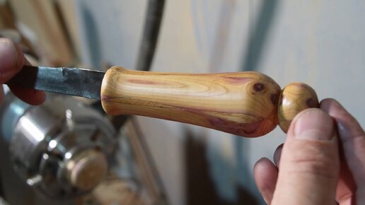 Склеил обрезки дуба и сирени и выточил ручку для ножа