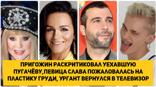 Пригожин раскритиковал уехавшую Пугачёву,Певица Слава пожаловалась на пластику груди, Ургант вернулся в телевизор