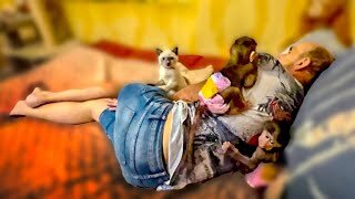 Я пришла домой и ЧТО Я УВИДЕЛА??? Влад спит, а Степа, Маня и Басик ОХРАНЯЮТ его сон и МОЛЧАТ)))