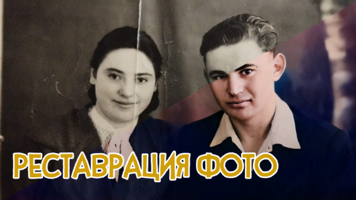 Реставрация старой фотографии бабушки и дедушки в молодости