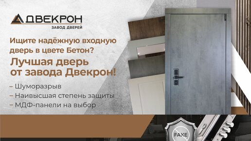 Ищете надёжную входную дверь в цвете Бетон? Лучшая дверь от завода Двекрон. Мдф-панели на выбор. Шуморазрыв!Наивысшая степень защиты. Обзор!