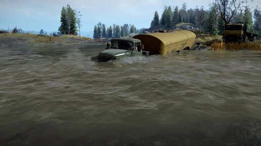 Зил 131 с полуприцепом бочкой и, Камаз 4310 с полуприцепом пробираются через трудные препятствия ( SnowRunner )