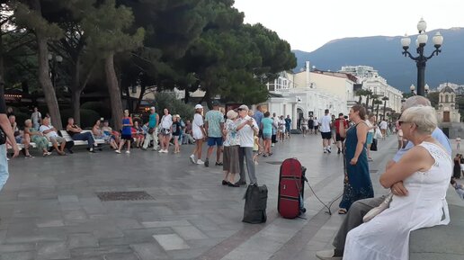 Пенсионеры в 90 лет красиво танцуют на набережной Ялты. Нежность в преклонном возрасте восхищает
