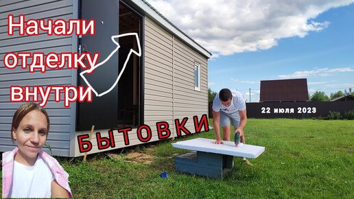 Начали отделку бытовки внутри.