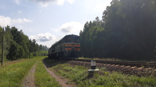 Тепловоз 2ТЭ10МК-3372 с контейнерным составом по перегону Дараганово-Фаличи