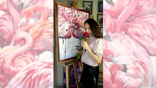 РОЗОВЫЕ ФЛАМИНГО // "Птицы утренней зари" холст, акрил, 90-70 см, 2015 г // художник Наталья Резанова