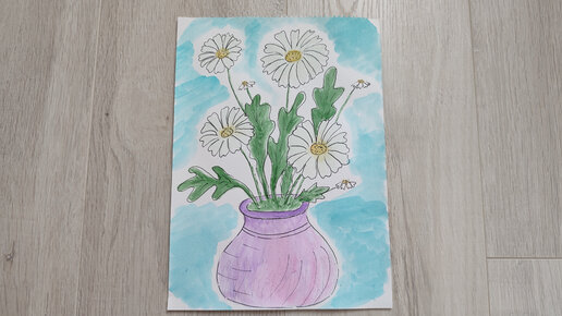 Цветы карандашом и красками. Ромашки. Скетч рисунок